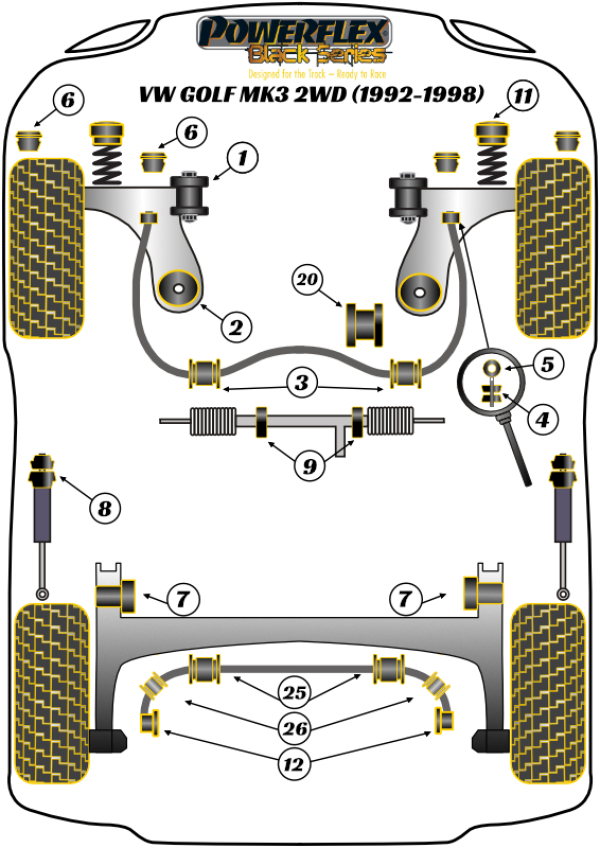 POWERFLEX Black Series bushes are manufactured using our Black 95 Shore A compound to provide maximum control of chassis geometry. They are designed for the Track, ready to Race and are engineered to be the best.