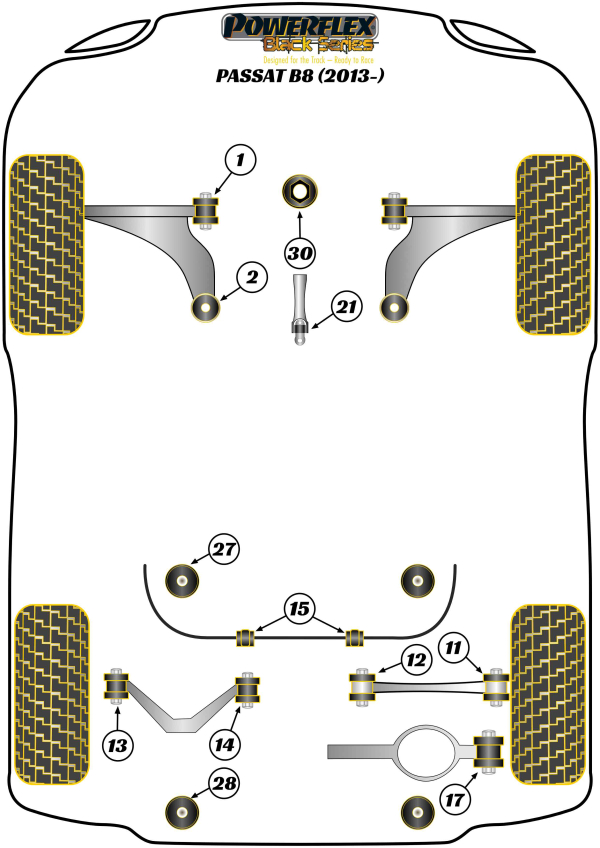 POWERFLEX Black Series bushes are manufactured using our Black 95 Shore A compound to provide maximum control of chassis geometry. They are designed for the Track, ready to Race and are engineered to be the best.
